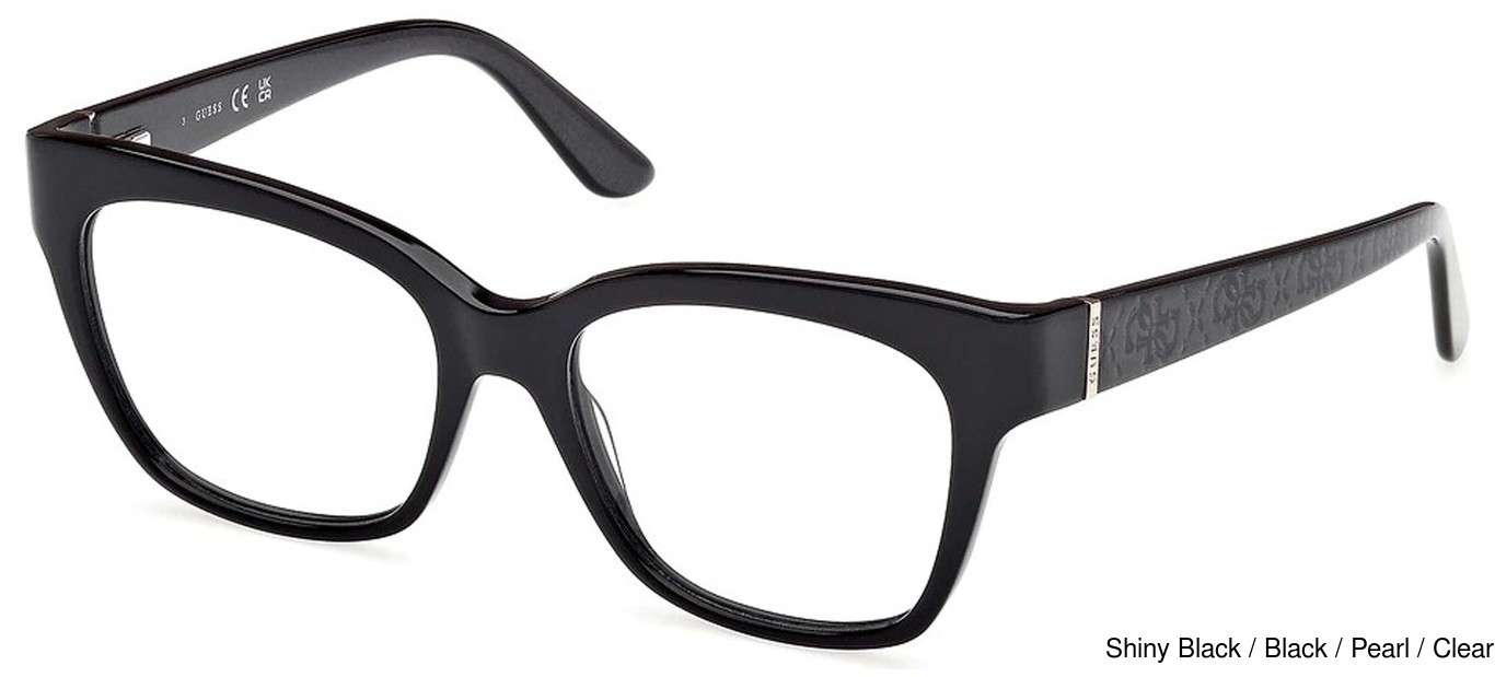The Guess Eyeglasses GU50233 001 are made of high quality material and are very popular eyeglasses frames for Women. These Guess fashionable frames were added to our website in November of 2025. This Plastic Frame is well put together in a Full Rim stylish design. The Square lenses are designed to provide clear and accurate vision, and offer a range of lens coatings and treatments that can enhance visual clarity and protect the eyes from harmful UV rays. The overall design is made to look good on all Women, with or without prescription lenses.