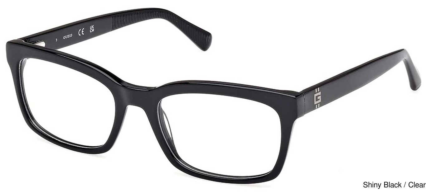 The Guess Eyeglasses GU50252 001 are made of high quality material and are very popular eyeglasses frames for Men. These Guess fashionable frames were added to our website in November of 2025. This Plastic Frame is well put together in a Full Rim stylish design. The Square lenses are designed to provide clear and accurate vision, and offer a range of lens coatings and treatments that can enhance visual clarity and protect the eyes from harmful UV rays. The overall design is made to look good on all Men, with or without prescription lenses.